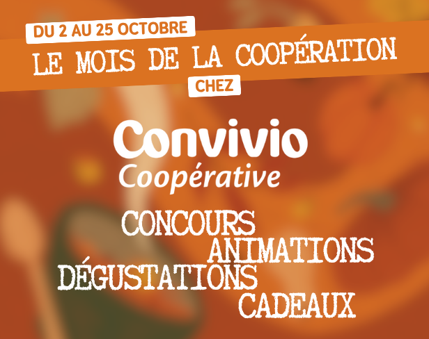 Lire l'articleTous les jeudis du mois et durant la Semaine de la Coopération (du 12 au 18 octobre), venez rencontrer nos ambassadrices dans 3 de nos magasins coopératifs Convivio. Elles répondront...