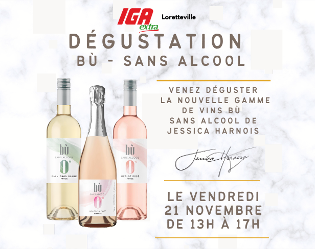 À la recherche d’options sans alcool qui ont du style pour les Fêtes ? En prévision des festivités à venir, Convivio vous invite à découvrir les vins sans alcool Bù signés par la sommelière québécoise Jessica Harnois, lors de dégustations exclusives dans nos 4 magasins.