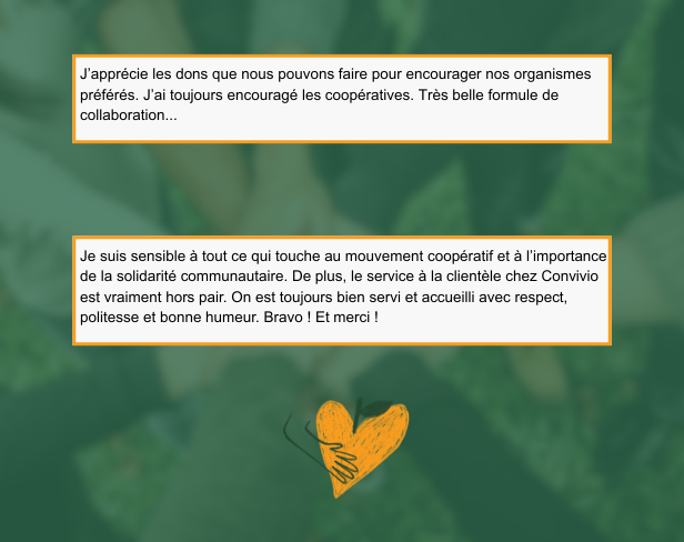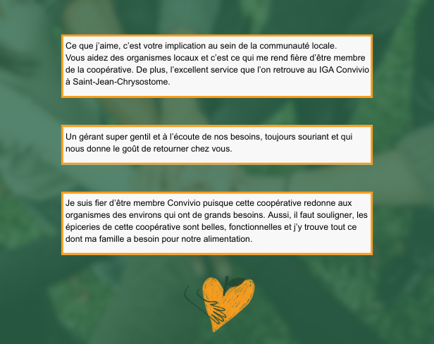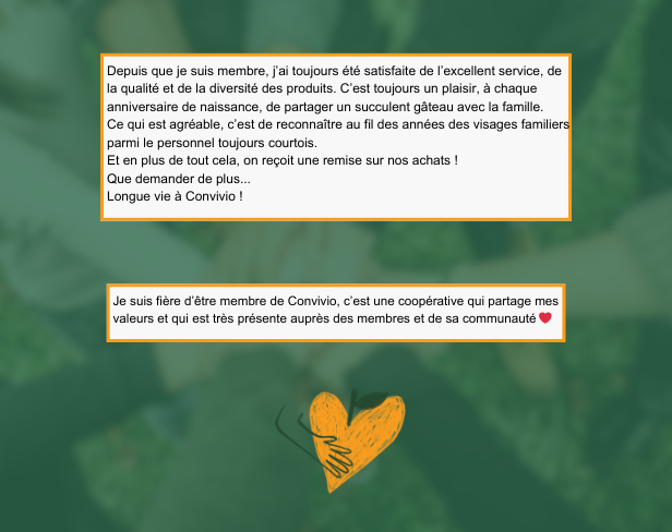 Vous avez été nombreux à nous faire part de votre attachement à la coopérative. Que vous soyez membres depuis un mois, un an, dix ans et parfois même depuis plus de vingt ans, vous partagez tous votre fierté de faire partie d'un modèle qui redonne à sa communauté.