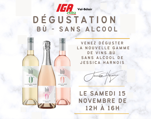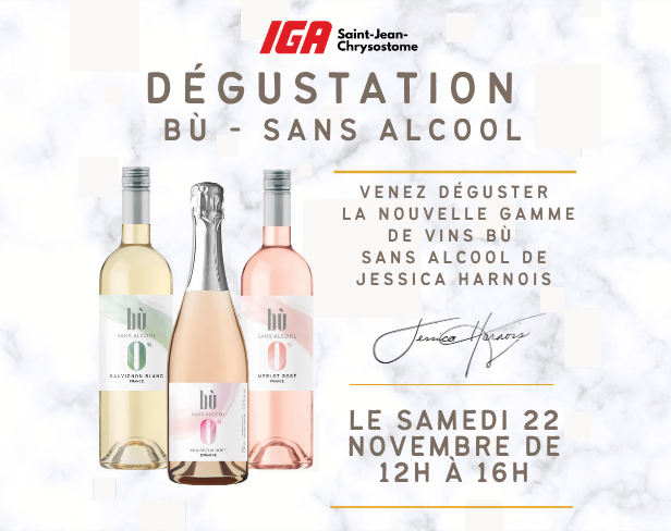 À la recherche d’options sans alcool qui ont du style pour les Fêtes ? En prévision des festivités à venir, Convivio vous invite à découvrir les vins sans alcool Bù signés par la sommelière québécoise Jessica Harnois, lors de dégustations exclusives dans nos 4 magasins.