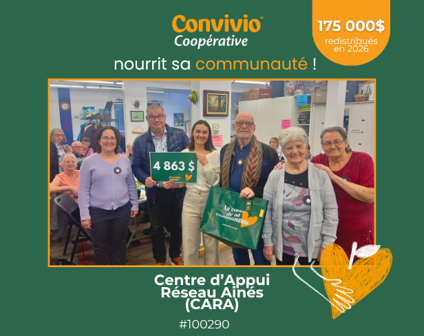 Chaque année, depuis plus de 10 ans sous cette forme, le Programme de dons Convivio permet de reverser 150 000$ à une centaine d'organismes locaux et provinciaux.